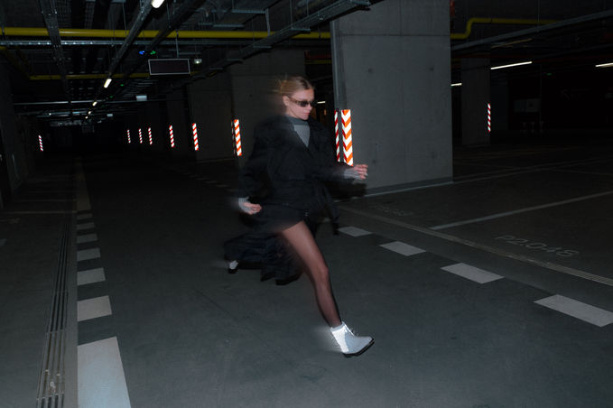 Autorka v kolekcii experimentuje s rôznymi formami reflexných materiálov, skúma mieru viditeľnosti v tme, odrazy plôch, spôsoby nanášania a aplikácie, kompatibilitu kože s odrazovými materiálmi. Vytvára plošné aj priestorové štruktúry pretkávaním. Na topánkach sa reflexné materiály objavujú v rôznej miere, od minimalistickej aplikácie po celoplošnú, a v rôznej forme ako reflexná fólia, reflexná farba, či 3D tlač z reflexného filamentu.